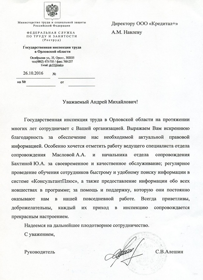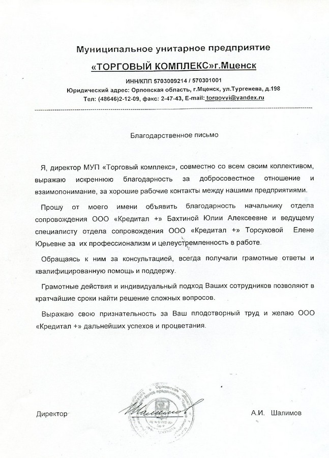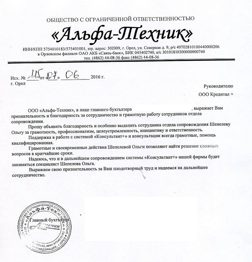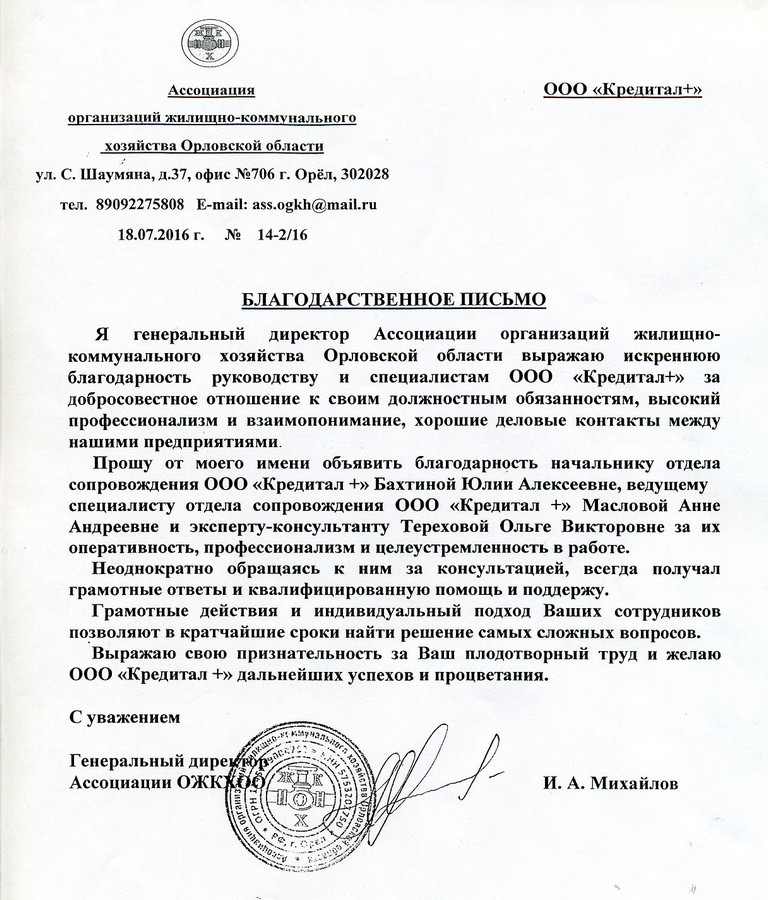 Коллективу ООО "Кредитал+" большое спасибо!