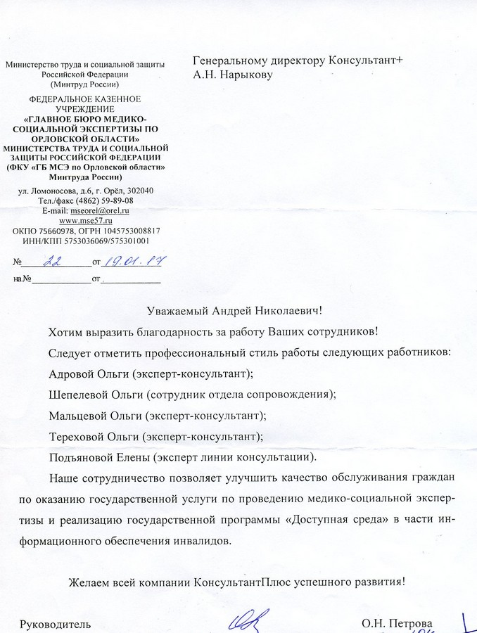 Юрисконсульт ООО "Орелрегионгаз"